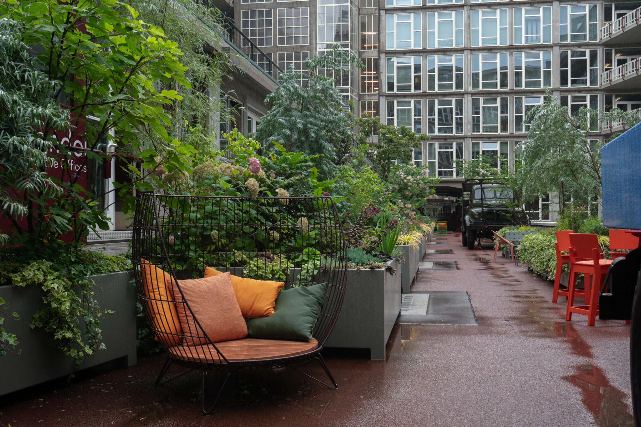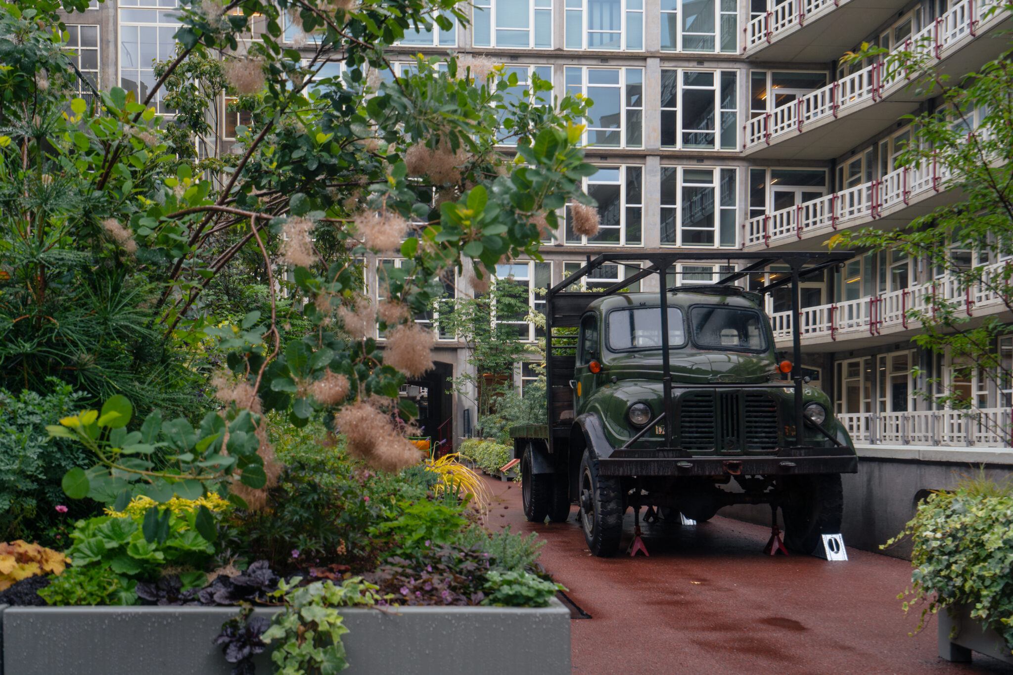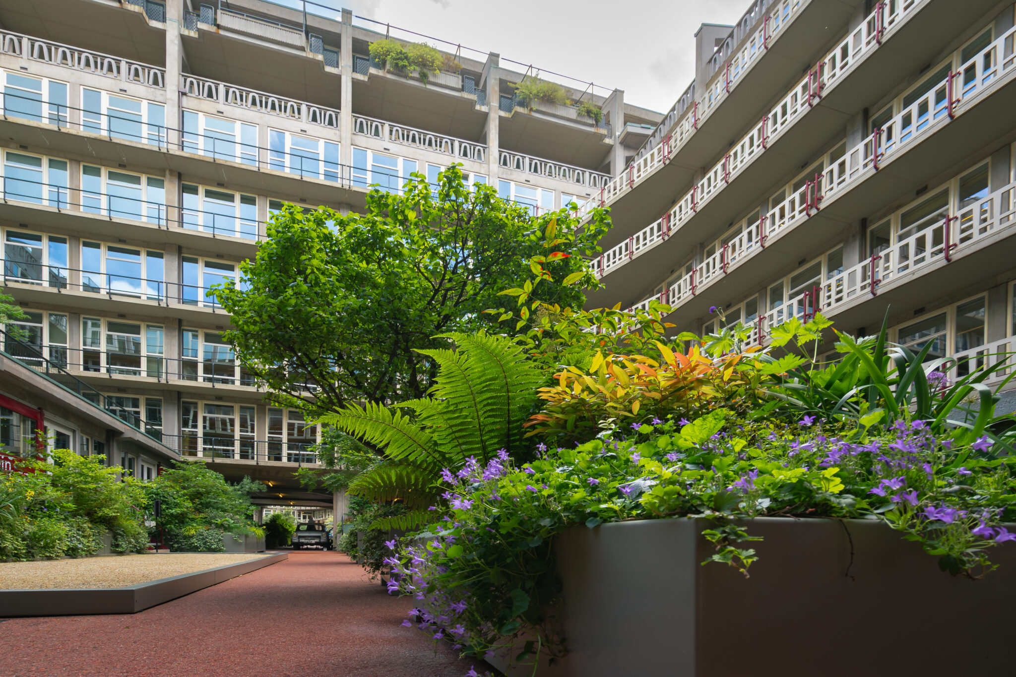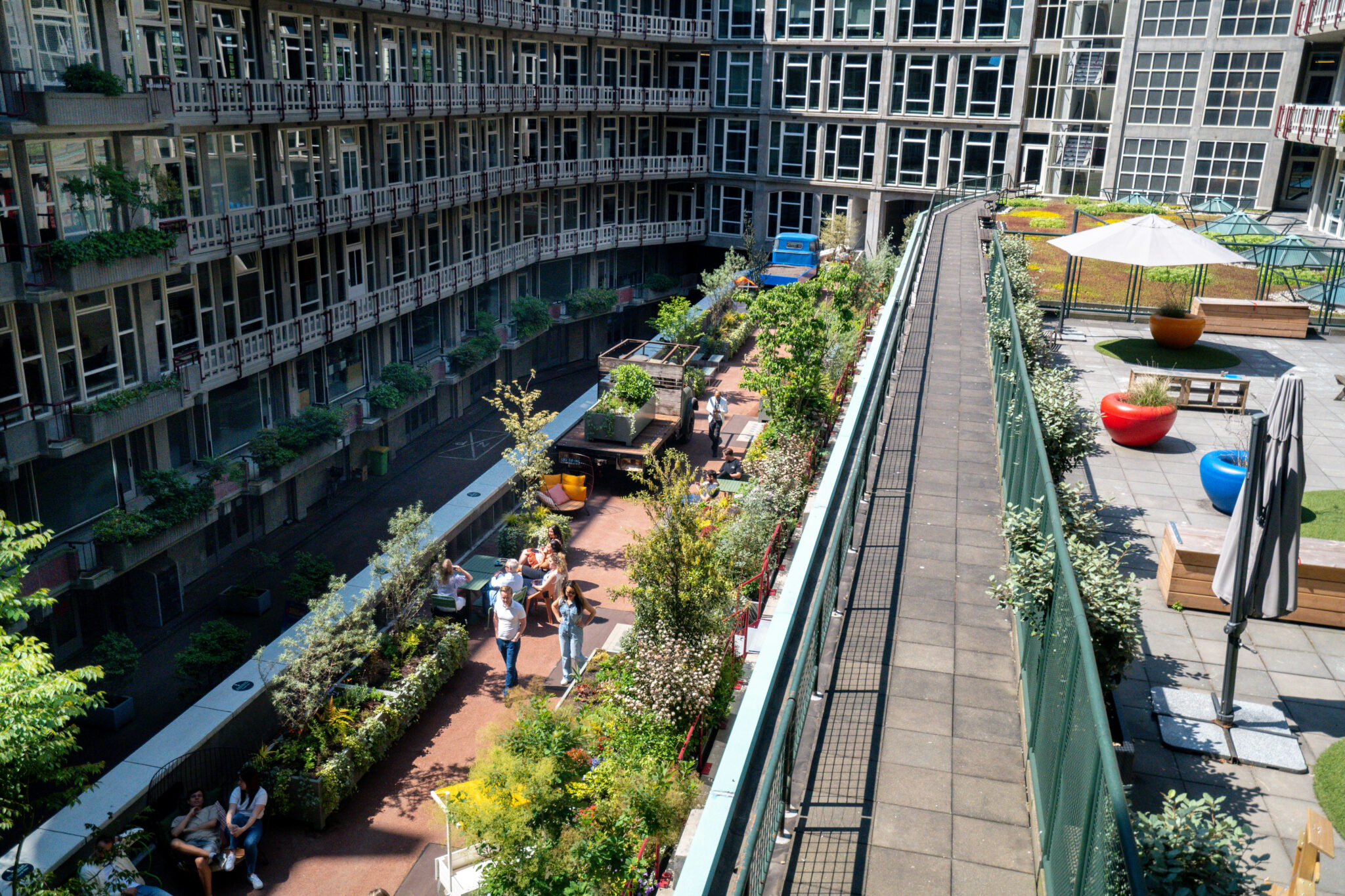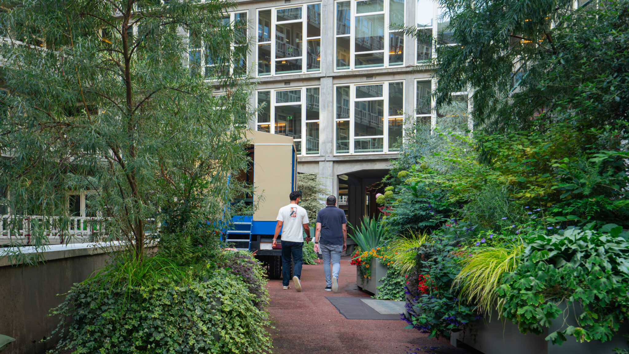 Omdat de binnenstraat de lucht in gaat, konden we niet direct in de grond planten. In plaats daarvan hebben we gebruikgemaakt van plantenbakken. Deze bakken wegen per stuk meer dan 4000 kg en zijn zo ontworpen dat ze zelfs volledig beplant nog verplaatsbaar zijn. Overigens gaan we er wel vanuit dat ze, dankzij de esthetische en toekomstbestendige waarde die ze aan het gebouw toevoegen, de komende honderd jaar niet vervangen hoeven te worden.