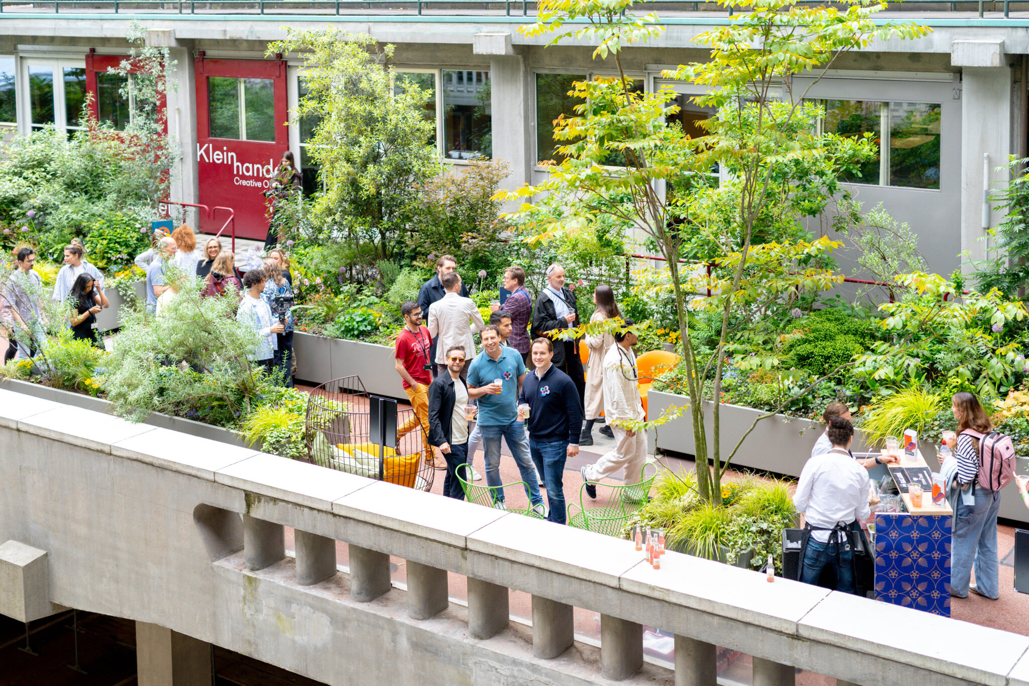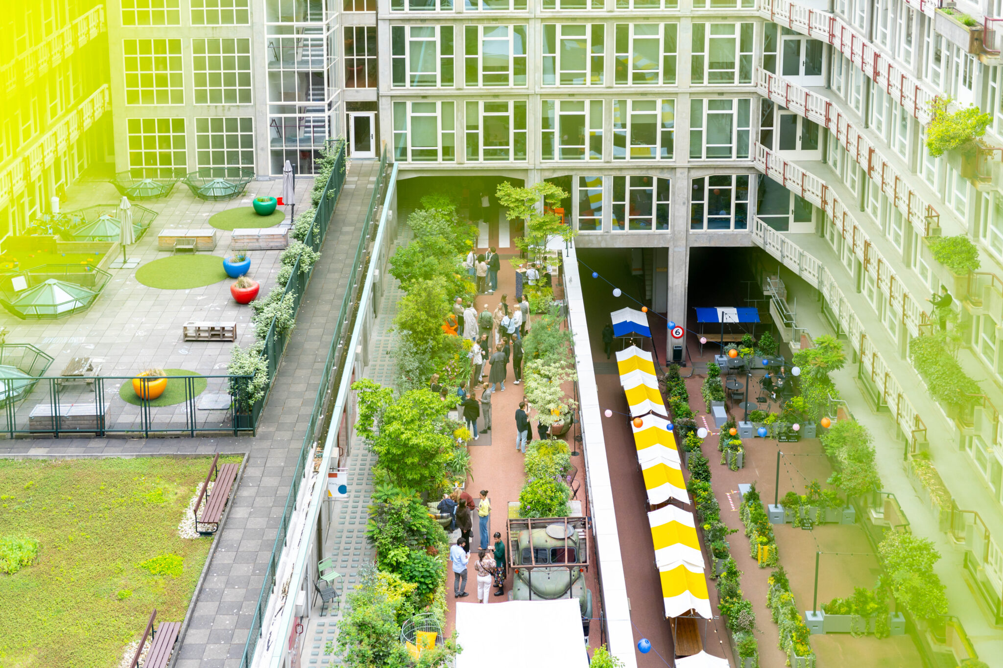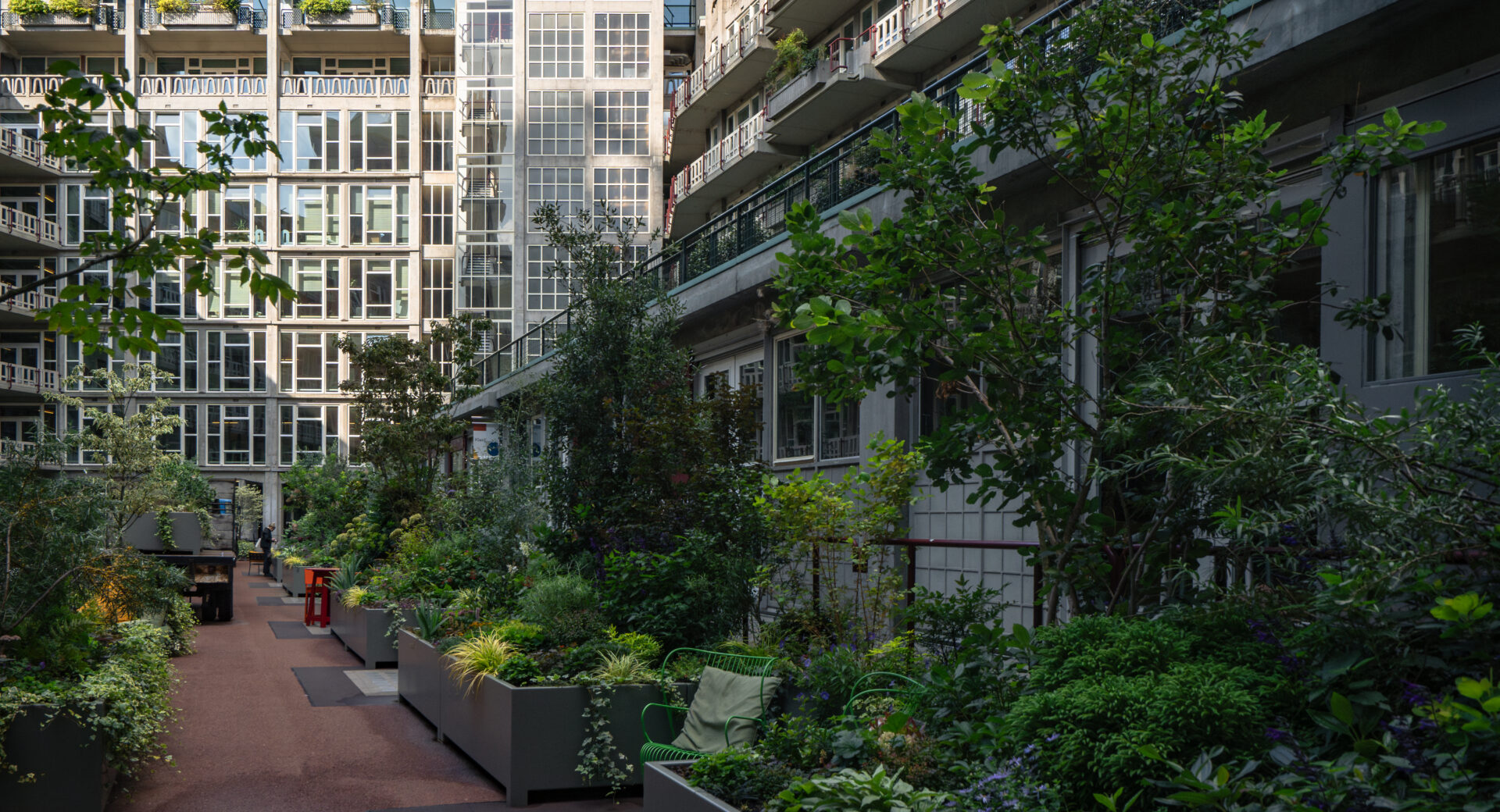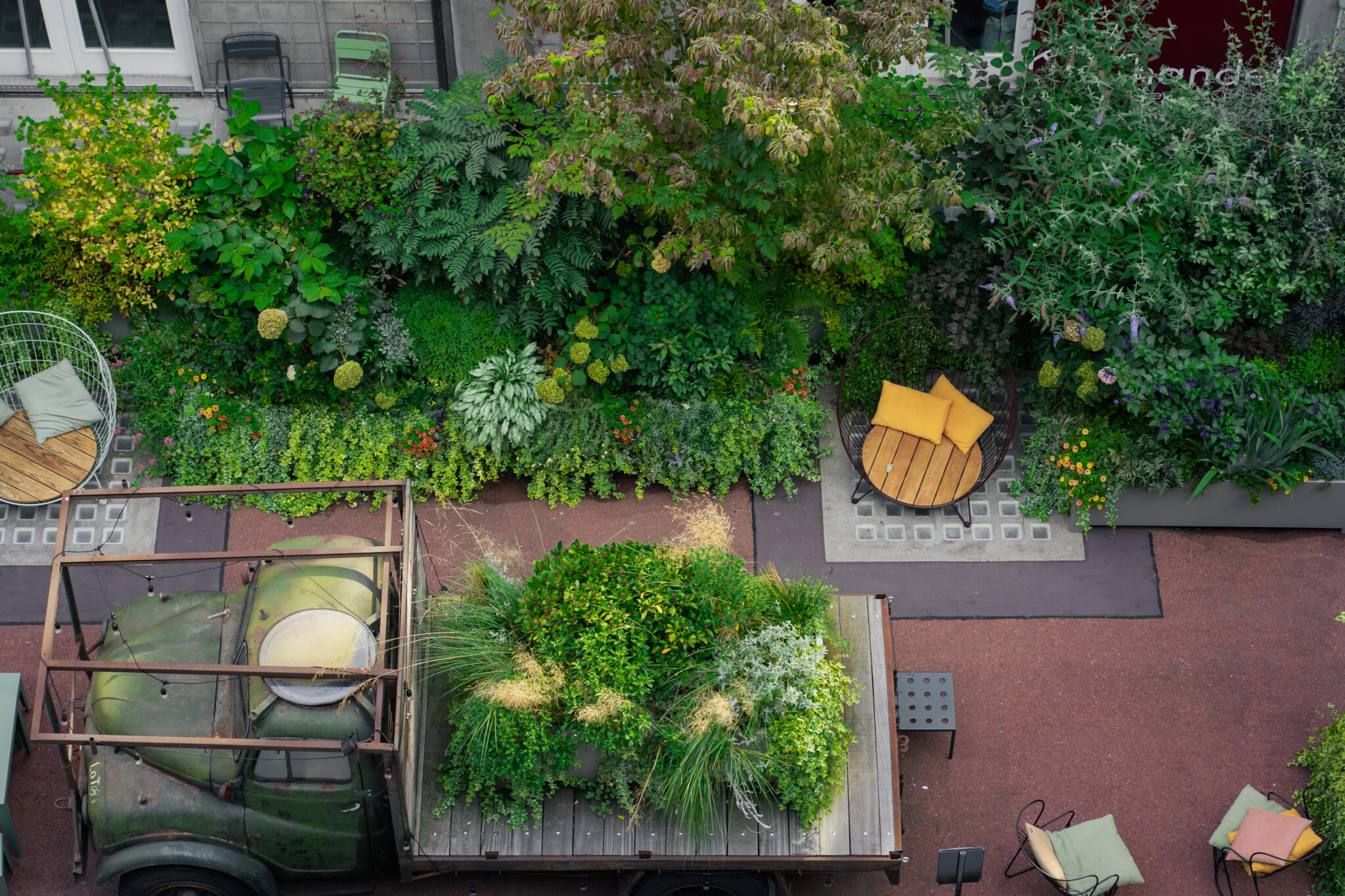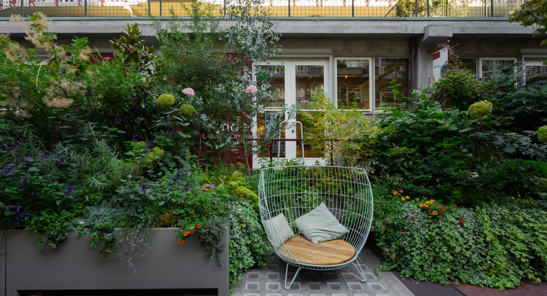 In onze filosofie staat de natuur voorop en de mens centraal: wij ontwerpen onze tuinen en parken om gebruikt te worden. Naast een petanquebaan hebben we verschillende stoelen en tafels geplaatst, waar gretig gebruik van wordt gemaakt. Zo wordt de tuin van het Groot Handelsgebouw niet alleen een fijne plek om te wandelen, maar ook om te werken en zelfs vergaderingen te houden. “Het voelt elke dag als kerst,” beschrijft een van de huurders het gevoel om hier rond te lopen en telkens iets nieuws te ontdekken. Daarnaast draagt al het groen bij aan meer zuurstof in de lucht, meer verkoeling in de zomer en minder wateroverlast bij hevige regenval. Het heeft dan ook een grote aantrekkingskracht op huurders. Want welk bedrijf zou hier nu niet willen zitten?