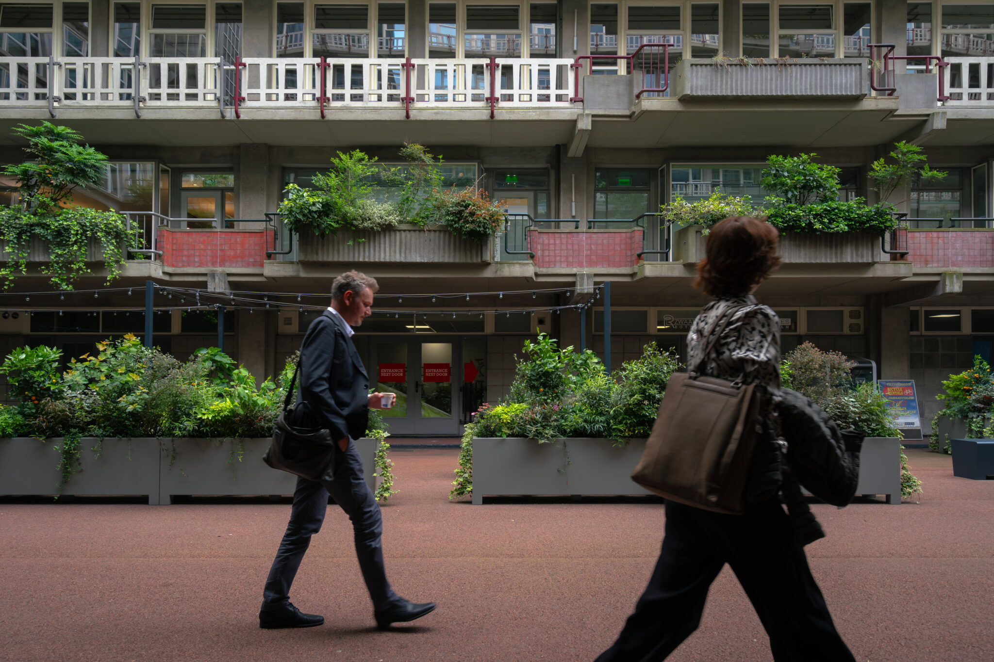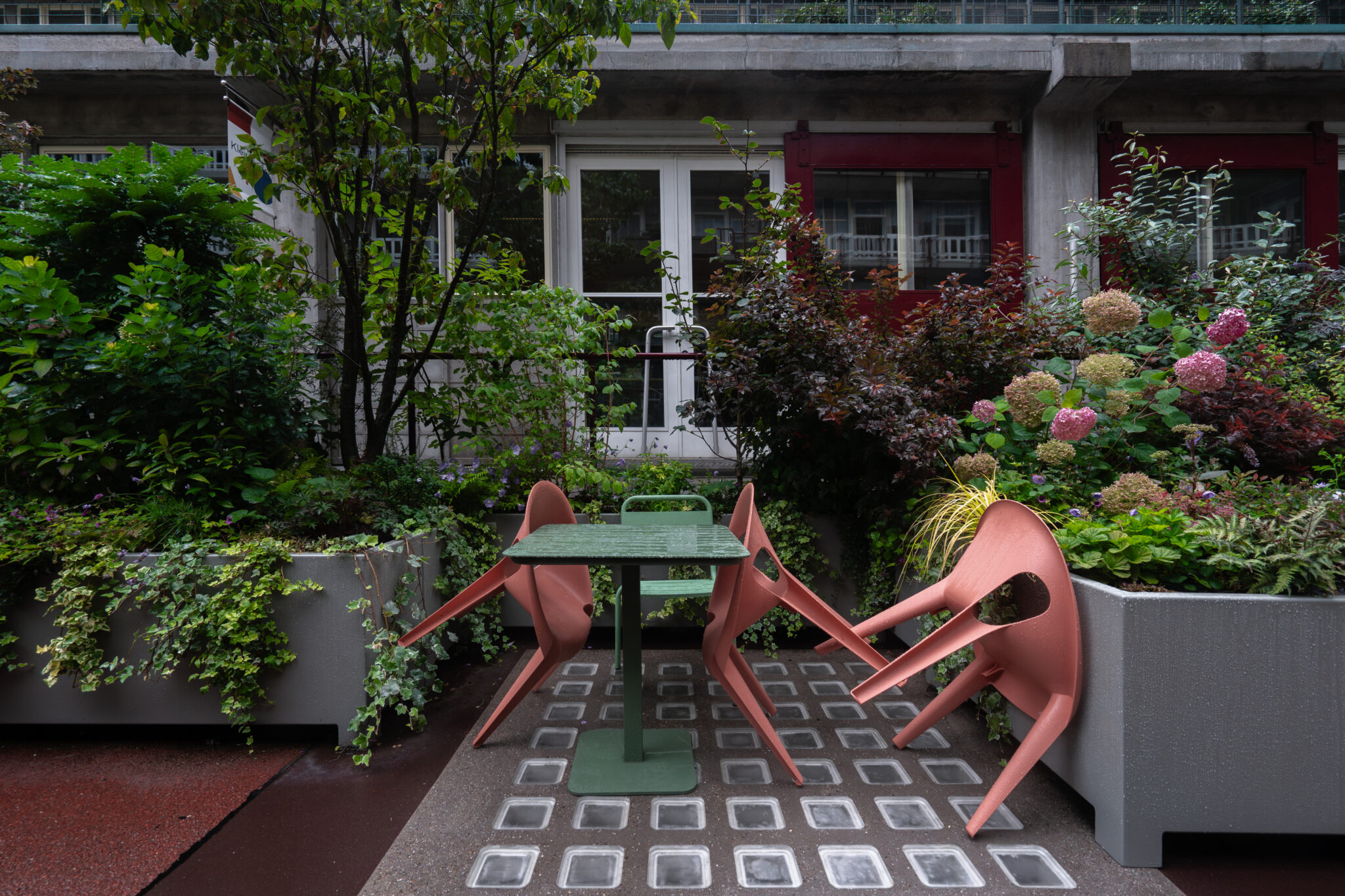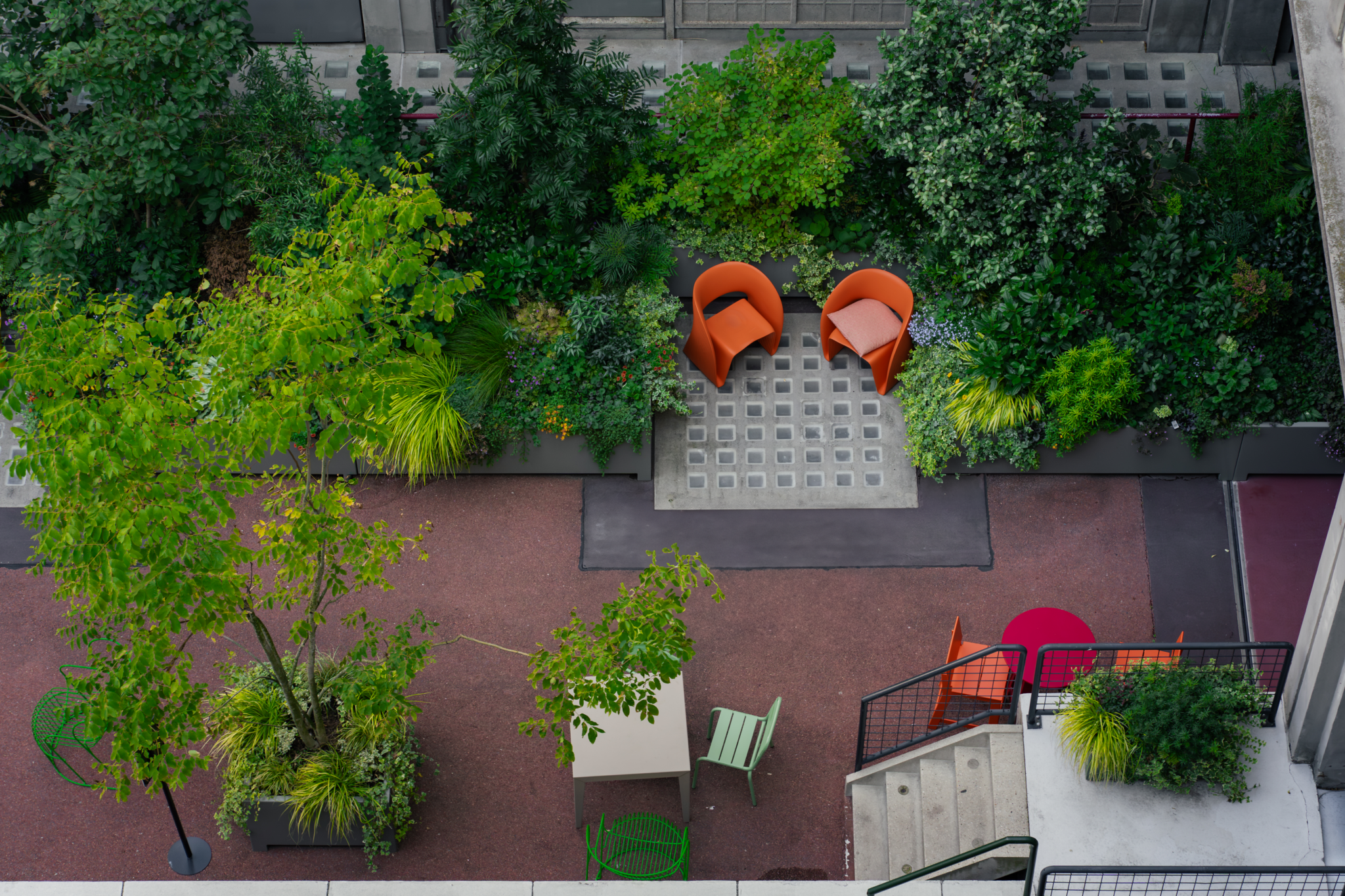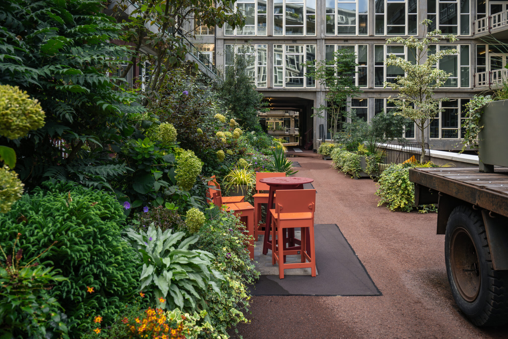 In onze filosofie staat de natuur voorop en de mens centraal: wij ontwerpen onze tuinen en parken om gebruikt te worden. Naast een petanquebaan hebben we verschillende stoelen en tafels geplaatst, waar gretig gebruik van wordt gemaakt. Zo wordt de tuin van het Groot Handelsgebouw niet alleen een fijne plek om te wandelen, maar ook om te werken en zelfs vergaderingen te houden. “Het voelt elke dag als kerst,” beschrijft een van de huurders het gevoel om hier rond te lopen en telkens iets nieuws te ontdekken. Daarnaast draagt al het groen bij aan meer zuurstof in de lucht, meer verkoeling in de zomer en minder wateroverlast bij hevige regenval. Het heeft dan ook een grote aantrekkingskracht op huurders. Want welk bedrijf zou hier nu niet willen zitten?